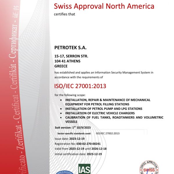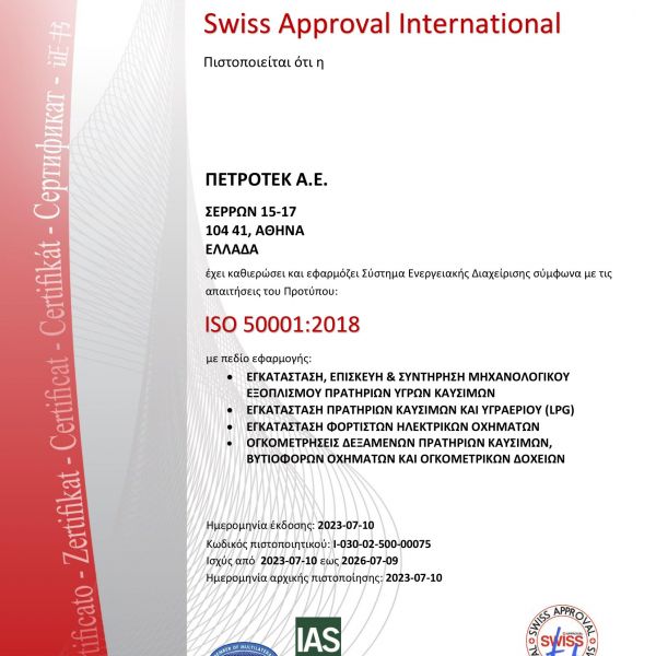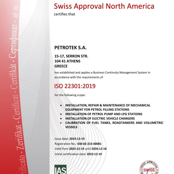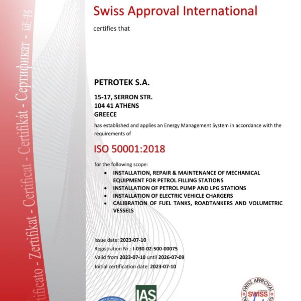 Πιο συγκεκριμένα, η Εταιρία είναι πιστοποιημένη κατά EN ISO 9001:2015, από τον οργανισμό πιστοποίησης TUV NORD (Certificate Registration No: 44100053103).